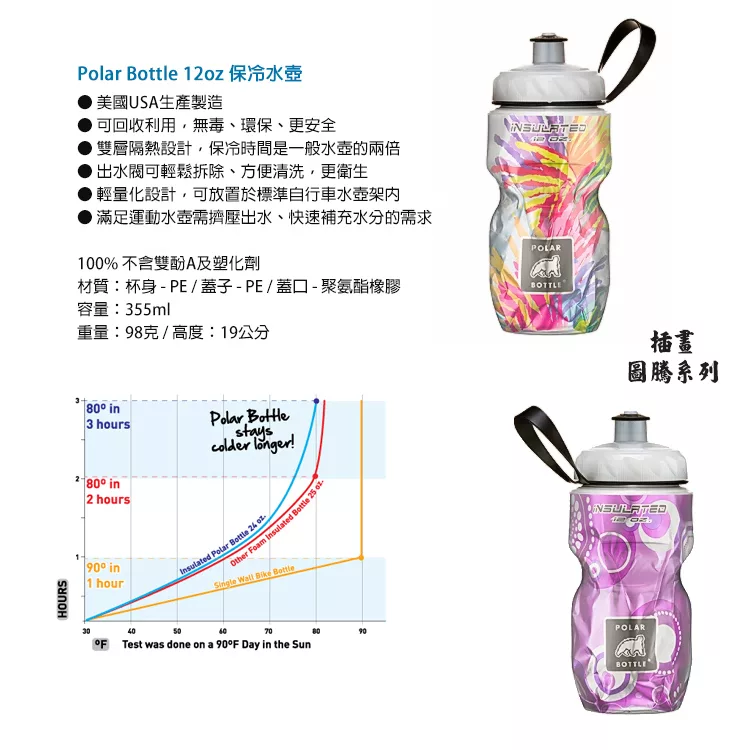 Polar Bottle 12oz保冷水壺 插畫圖騰系列 (355ml) - 城市綠洲 (運動保冷水壺、自行車水壺、保冷、美國製造)怪物卡車 評價